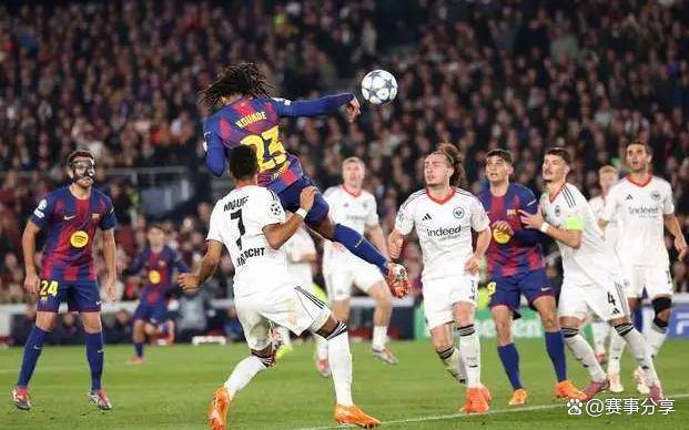 然而,下半场局势急转直下,来自曼联的租借球员拉什福德和本场比赛中本该以防守为主的后卫孔德联手,仅用了三分钟时间就迅速扭转了比赛的局面。最惊人的是,16岁的天才小将亚马尔送出了一脚精彩传中,他不仅帮助球队逆转,还超越了姆巴佩,成为欧冠历史上19岁以下制造进球最多的球员。这场比赛不仅有历史新纪录,神奇的逆转,还出现了后卫梅开二度的铁树开花时刻,堪称精彩绝伦。在这场比赛之前,巴萨的欧冠之路并不顺利。尽管西甲赛场上巴萨状态火热,六连胜势如破竹,但回到欧冠,他们在五轮比赛中仅拿到7分,状态波动,想要直接晋级16强,这一场比赛对他们来说绝对是不能失利的。法兰克福虽然晋级的可能性不大,但回想起2022年欧联杯,他们曾在诺坎普把巴萨淘汰出局,巴萨此番作战心中也带着复仇的决心。比赛一开始,巴萨看似占据主动,控球率遥遥领先。第10分钟,莱万的一记铲射打入了球门,但因为拉菲尼亚越位在先,进球被判无效。可惜,从那之后,巴萨似乎把好运都用光了。第21分钟,法兰克福通过一次简单的配合,布朗突破传中,巴萨后卫赫拉德-马丁解围失误,球漏给了克瑙夫,后者冷静推射得分。诺坎普瞬间安静下来,球迷们心情低落,巴萨上半场虽然控球占优,但进攻端没有太多威胁,场面令人昏昏欲睡。更糟糕的是,在上半场补时阶段,法兰克福差点再次进球,克瑙夫回传,斯里希的抽射稍稍偏出。如果上半场带着0-2的比分进更衣室,巴萨的形势就真的非常危险了。进入中场休息后,巴萨主教练弗里克必定发火了。下半场一开始,他做出了一个非常关键的调整:将拉什福德换上,替换下了表现平平的费尔明。这个换人,后来证明是绝妙的决定。